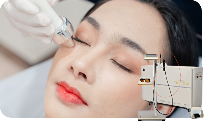 The Dual Yellow Laser uses dual wavelengths (511 nm green and 578 nm yellow) for targeted and effective skin treatments, offering a painless experience with no downtime.